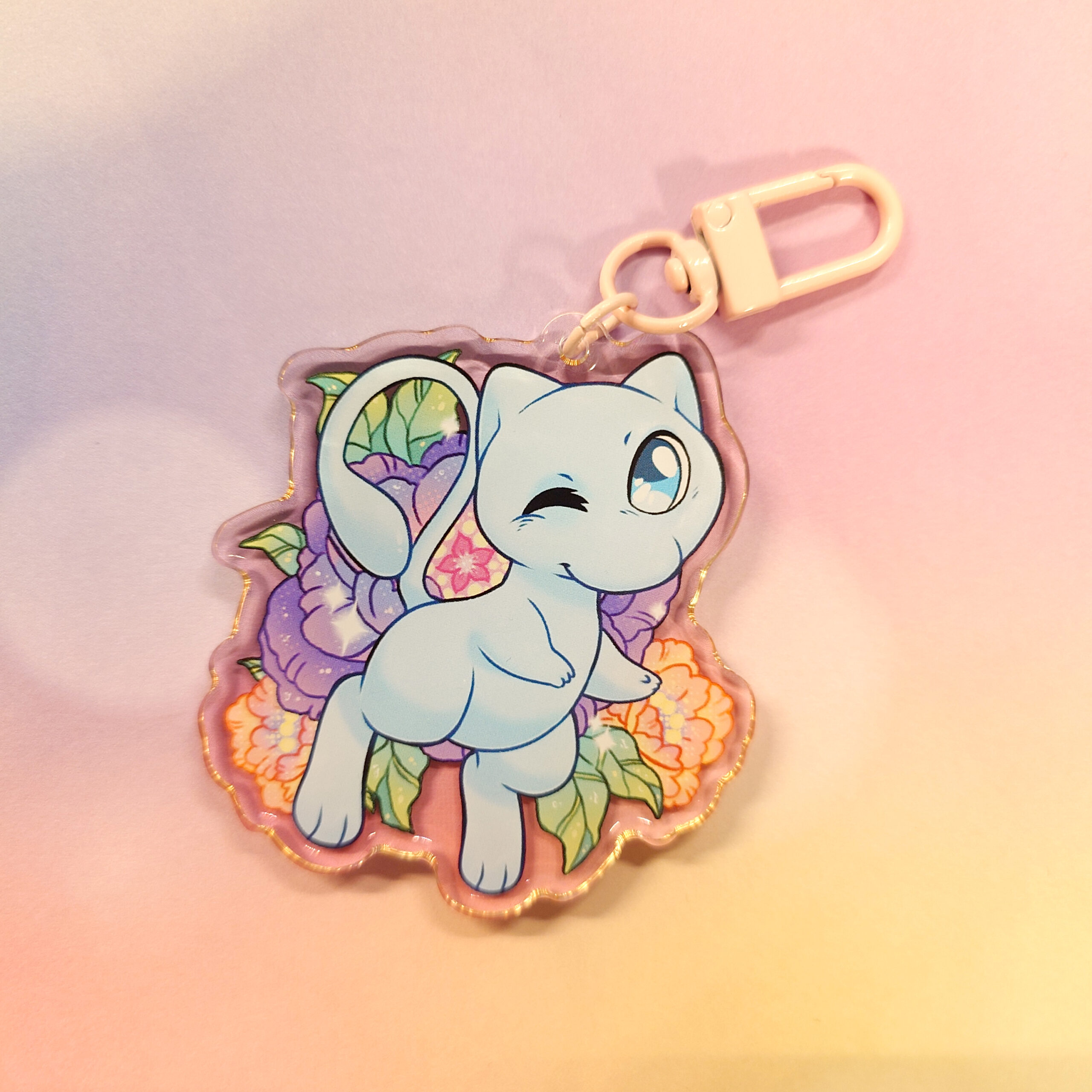 Double-sided acrylic keychain – Pink and blue small friend