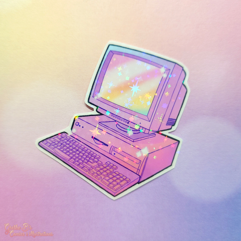 Holo Laminated Sticker – Vaporwave PC